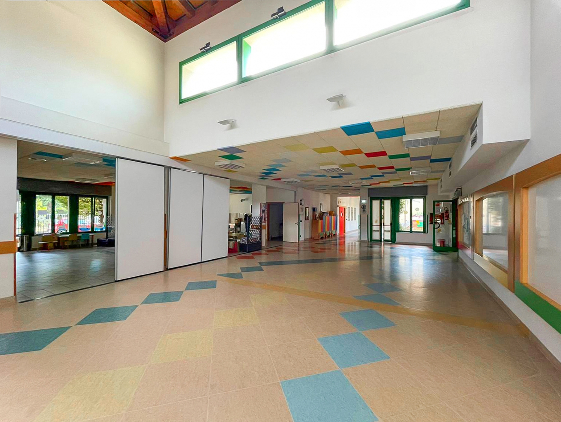 L'organizzazione degli spazi è momento pedagogico. Prendersi cura dei bambini si concretizza anche attraverso la cura per gli spazi in cui prende vita l’azione educativa nel quotidiano. Gli ambienti sono ben delineati, riconoscibili, adatti ma adattabili e sono occasione e opportunità per tutti i bambini.