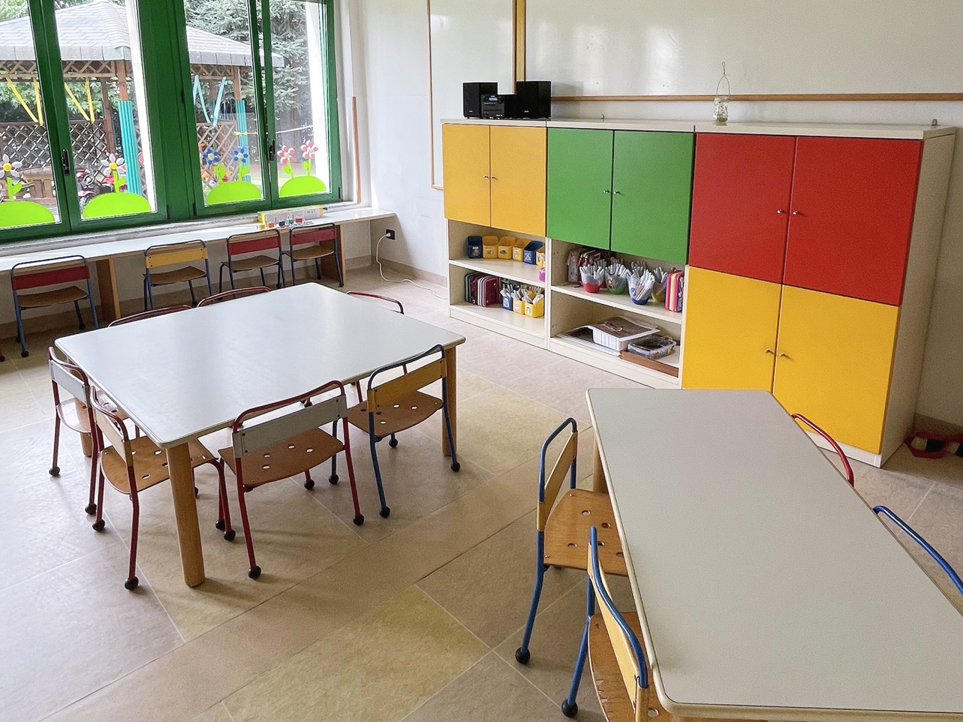 L'organizzazione degli spazi è momento pedagogico. Prendersi cura dei bambini si concretizza anche attraverso la cura per gli spazi in cui prende vita l’azione educativa nel quotidiano. Gli ambienti sono ben delineati, riconoscibili, adatti ma adattabili e sono occasione e opportunità per tutti i bambini.